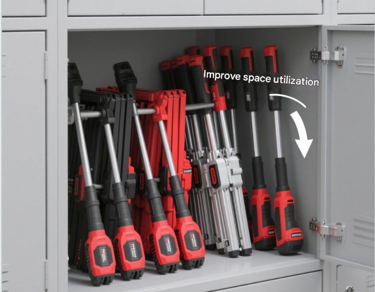 Подходит для различных сред хранения: будь то домашний гараж, инструментальная комната или складское помещение на рабочем месте, оборудование со складной конструкцией вала легко адаптируется, что делает его удобным для хранения и управления в соответствии с реальными потребностями.