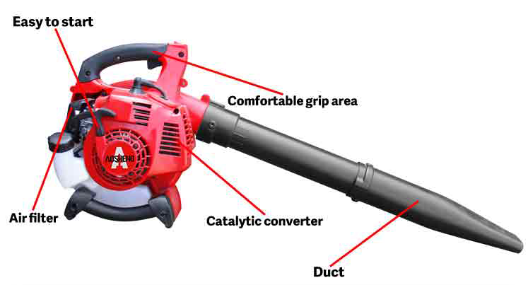 Всасывание и выдувание Сертификация Евро 5 Обрезиненная ручка, коллектор из прочного нейлона.