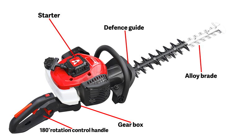 | 02РУЧКА УПРАВЛЕНИЯ ПОВОРОТОМ НА 180°Эта ручка поддерживает вращение на 180 градусов, что делает пользователей более удобными при стрижке живой изгороди. |