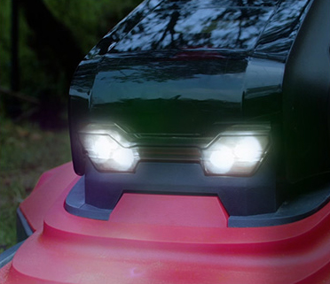 Светодиодные фары позволяют косить в любое время.