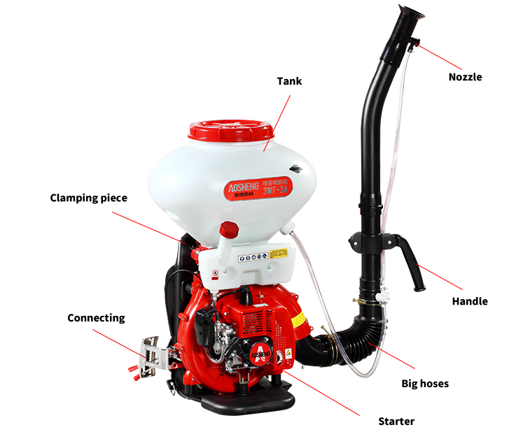 Главная / Продукты / Садовые инструменты с бензиновым двигателем / Туманная тряпка / 3WF-3/A/B/C ранцевый пылесос для распыления тумана